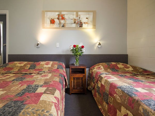 This Family Room consists of 1 Queen Bed and 2 King Single beds. Features include air conditioning, LED flat screen TV, tea and coffee making facilities, iron and ironing board, hairdryer and ensuite with walk in shower. Also includes free wifi and parking!