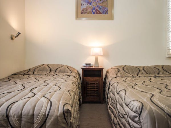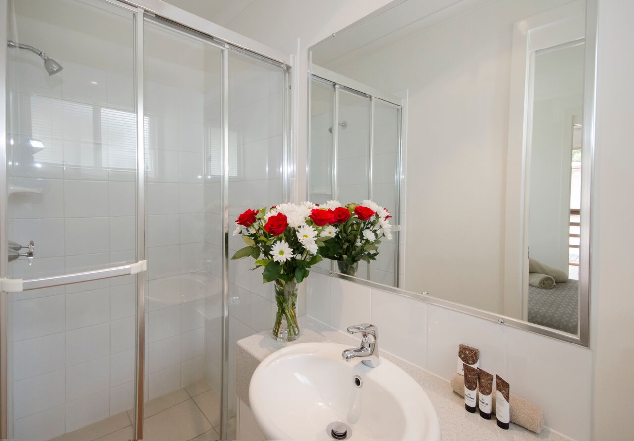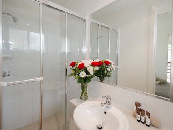 Our Self Contained Cabins are perfect for longer stays. The Twin Cabins consist of 1 Queen Bed and 1 Single Bed, separate living area, ensuite with shower, LED flat screen TV, kitchen facilities, iron and ironing board. Also includes free wifi and free parking!