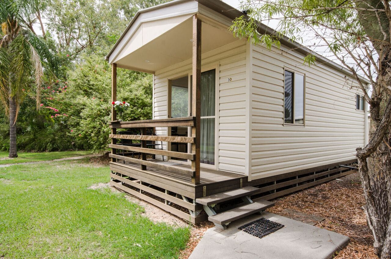 Our Self Contained Cabins are perfect for longer stays and families. The Family Cabins consist of 1 Queen Bed and 2 Single Beds, separate living area, ensuite with shower, LED flat screen TV, kitchen facilities, iron and ironing board. Also includes free wifi and free parking!